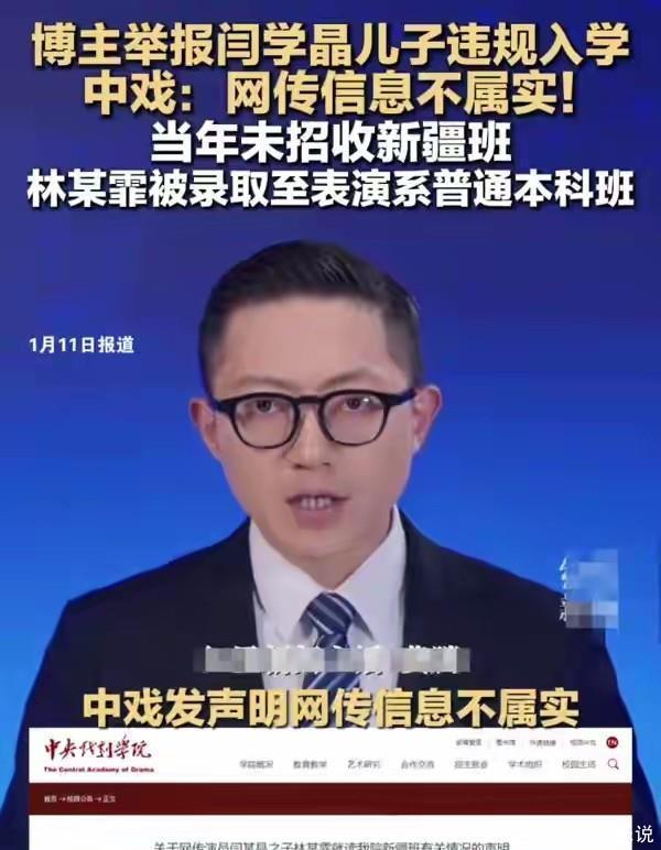 可闫老师当时的态度可不是现在这样。被怼得最狠的时候,她居然在直播间甩出一句:“抵制有什么用呢?”这下更把大家惹毛了!评论区直接变成大型声讨现场,连带她代言的几个品牌也被网友抵制。某食品公司后来直接发声明说要跟她解约,还索赔包装费停产损失呢。关键时刻她儿子也摊上事儿了。闫学晶随口一提儿子“报考中戏新疆班”,结果网上炸锅了——新疆班本来是给少数民族学生的政策福利,汉族户口的人怎么就进去了?中戏后来被迫发声明澄清:2012年压根没招新疆班,她儿子是普通班录取。虽然这事平了,但舆论热度一点没降。