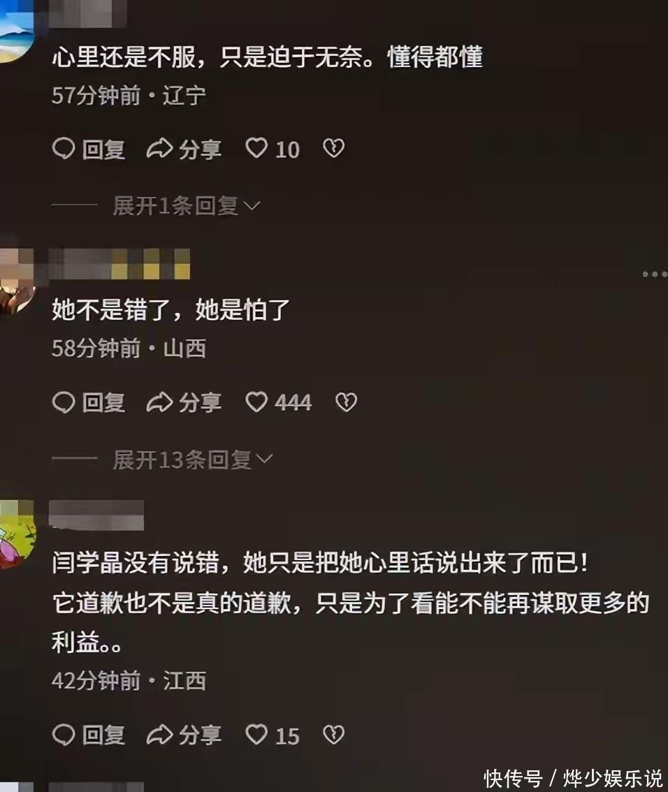 转机出现号晚。闫学晶突然发朋友圈认错,说自己“习惯了被人捧着就忘了本”,还说自己从小普通家庭长大,“是父老乡亲养活了我艺术生命”。这话说得挺煽情,但网友还是不买账。有人扒出她名下有北京大平层,三亚还有千万海景房,单场直播带货销量超二百三十万。